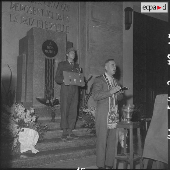 L'aumônier militaire Montmartin prononce une allocution lors des obsèques du capitaine Duche du 1er RC (régiment de chasseurs).