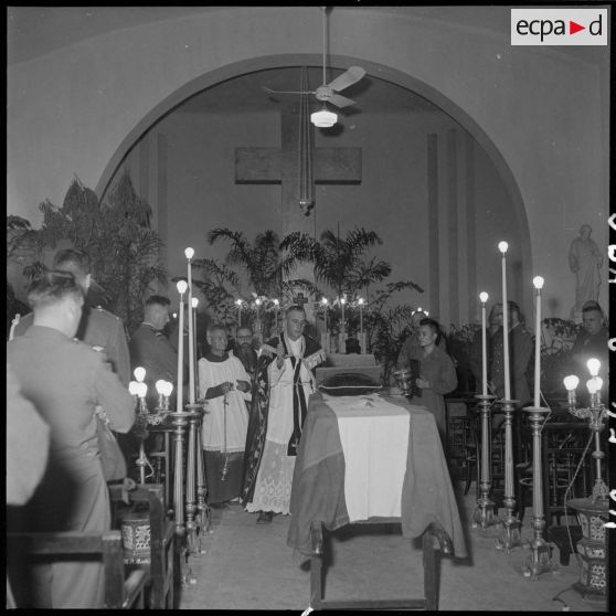 L'aumônier militaire Montmartin officie pour les obsèques du capitaine Duche du 1er RC (régiment de chasseurs).