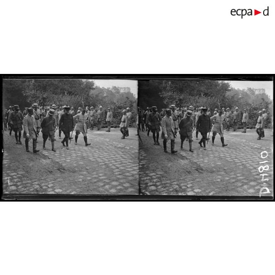 Noyon (Oise). Prise d'armes et remise de décorations par le prince de Connaught, le prince pendant le défilé.