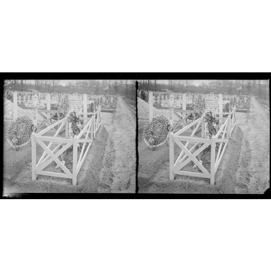 Courlandon (Marne). Tombe du Maréchal des logis Halfon du 22e d'artillerie, 113e batterie de 58 (24-11-1917). [légende d'origine]