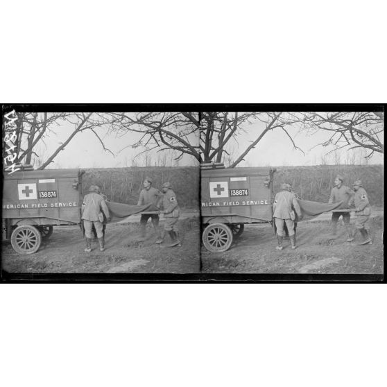 - A Gernicourt, un canot-ambulance circule sur le canal de l'Aisne ; il accoste ensuite à Pontavert et débarque un blessé chargé dans un camion de l'American Ambulance Field Service (AAFS).