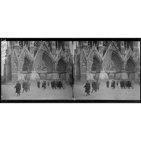 Dans le secteur de Berry-au-Bac. La visite de la cathédrale de Reims par des missions espagnole et américaine.