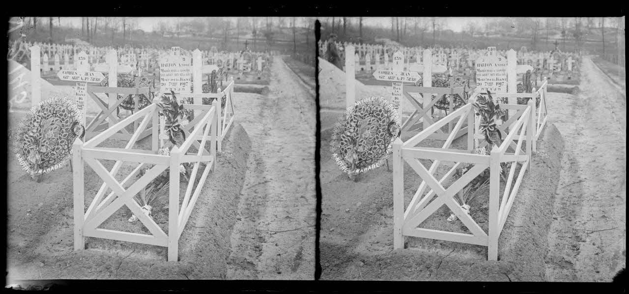 Courlandon (Marne). Tombe du Maréchal des logis Halfon du 22e d'artillerie, 113e batterie de 58 (24-11-1917). [légende d'origine]