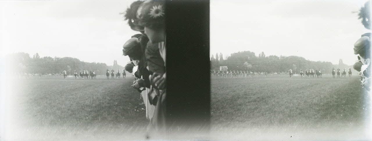 Ce reportage rassemble des photographies de la vie quotidienne civile, et notamment une série prise lors d'une course hippique.