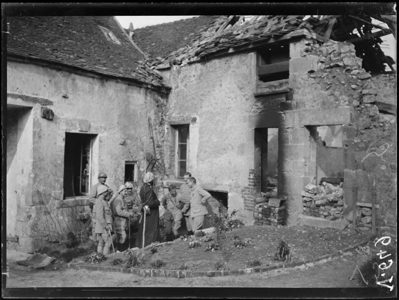 - Au village de Craonnelle (Aisne, 14/04/1916, V 648 à V 656), l'aumonier de la 36e DI rend visite aux hommes cantonnés dans le village en ruine. L'église et de nombreuses habitations ont été détruites. Le château est entièrement détruit (V 653).