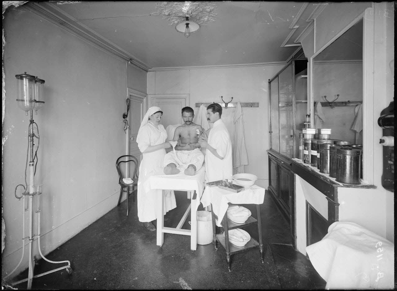 Hôpital des Arts et métiers. Boulevard de l’hôpital n°151. Mme Viviani massant un blessé.