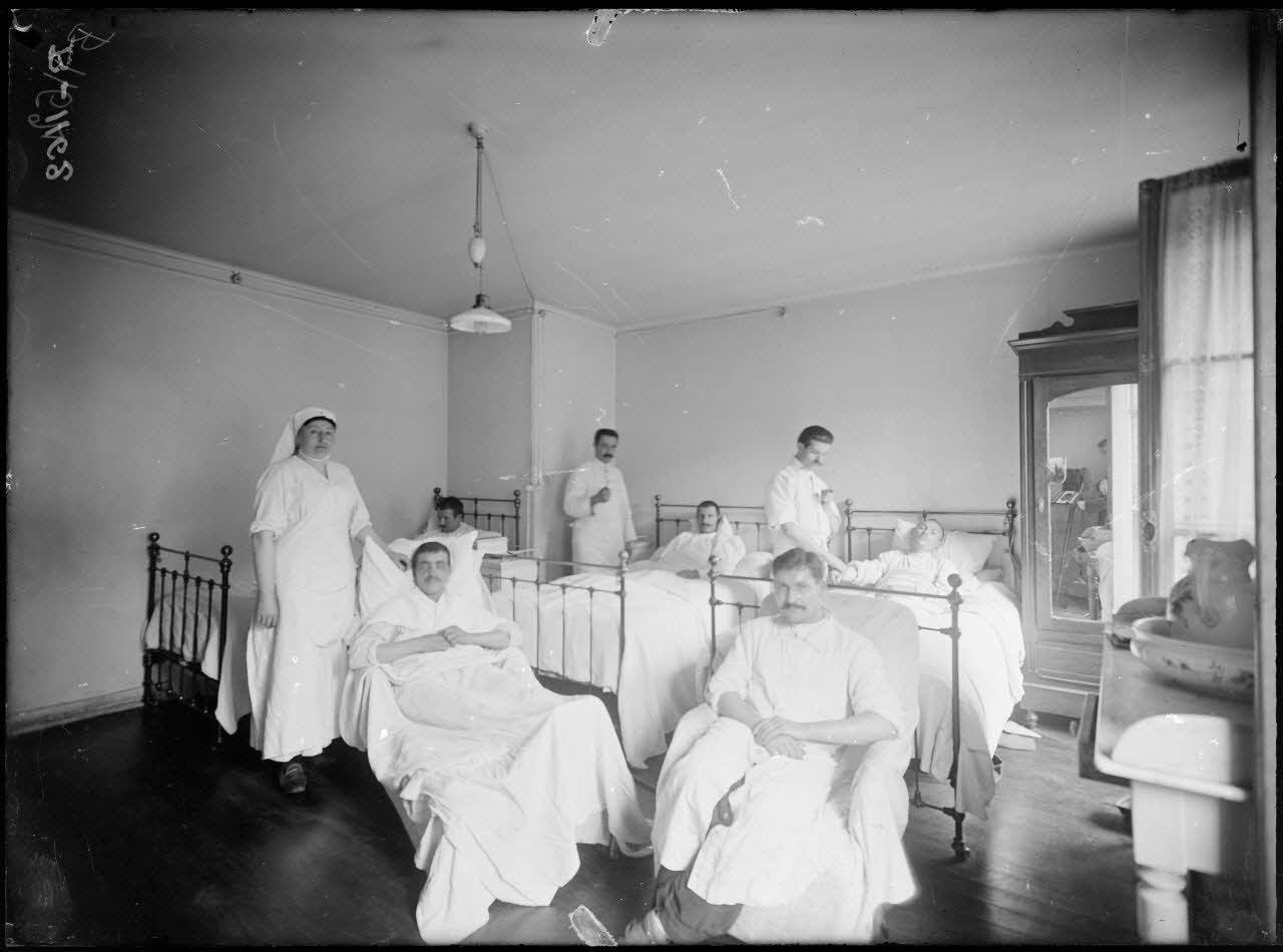 Hôpital des Arts et métiers. Boulevard de l’hôpital n°151. Mme Viviani massant un blessé.