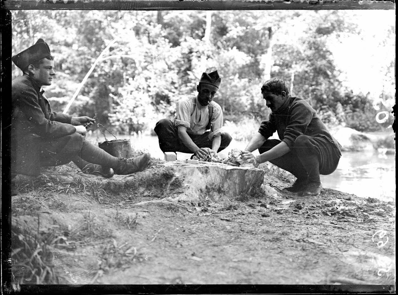 Jeux (plaques 64 et 67), lessives (pl. 59, 60 et 69), musique (pl. 72 : école de trompettes et clairons) et popotes (pl. 66 et 71) alternent avec des entraînements :