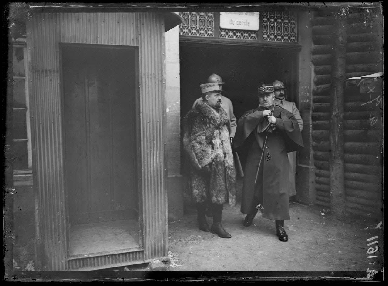 Dannemarie. Le Général Nivelle sortant du Q. G. de la Division. [légende d'origine]