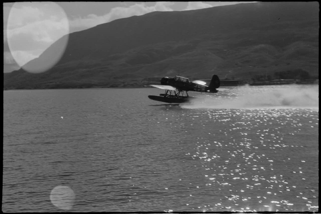 Dans la baie de la Souda, le décollage d'un hydravion Arado Ar-196 appartenant au Seeaufklärungsgruppe 125.