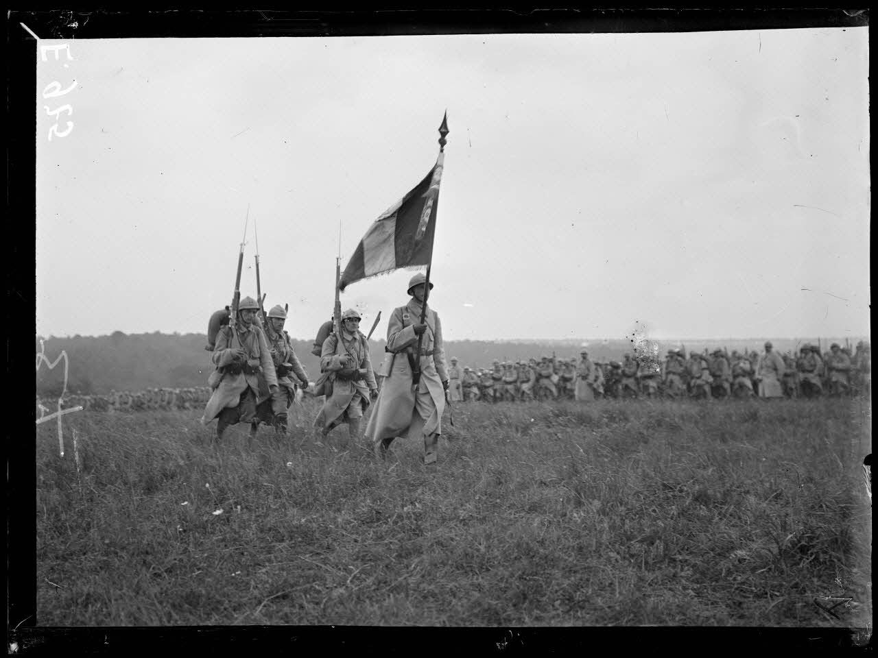 Dans la Somme. Près de Villers-Bretonneux (route de Cachy et Donant sur la Luce). Revue d'une brigade du 35e corps devant participer aux opérations. [légende d'origine]