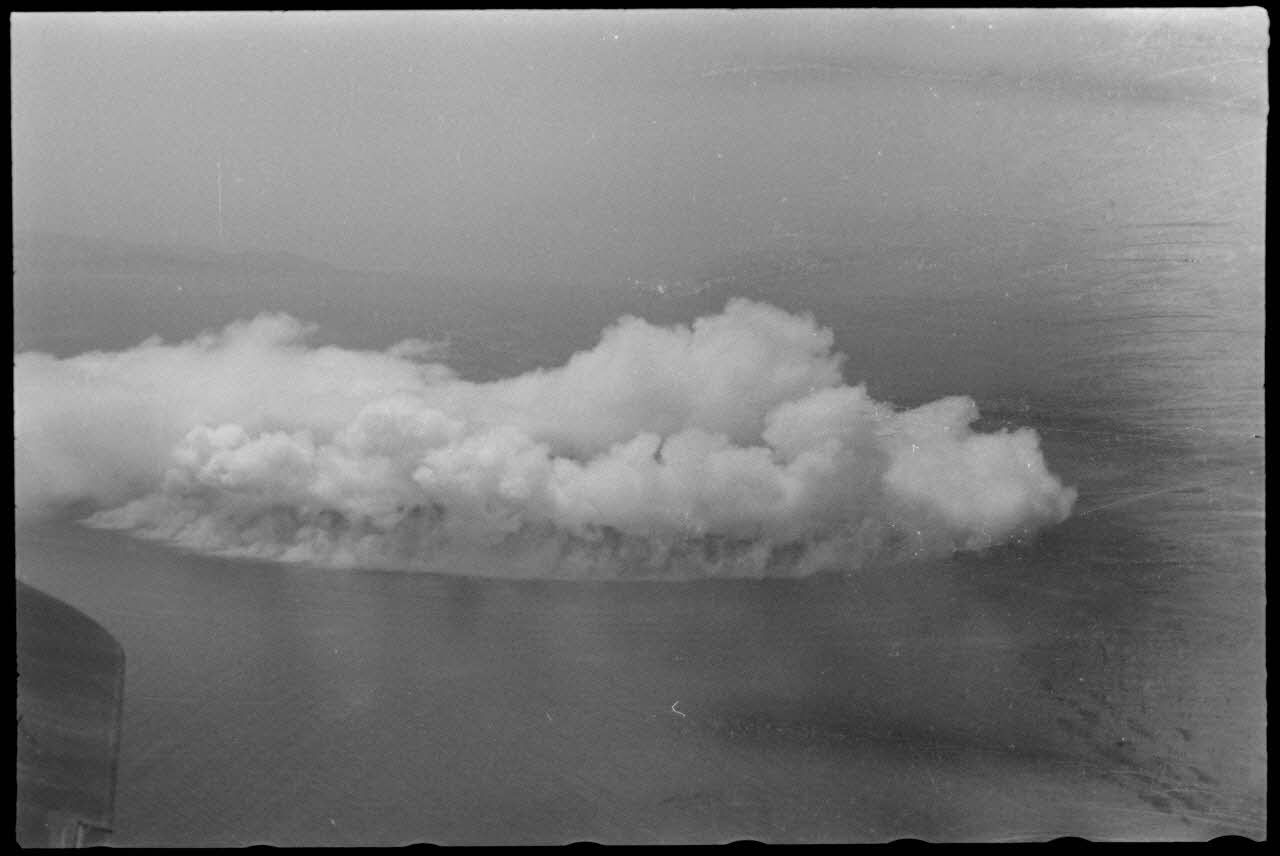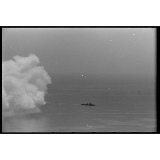 Dans le golfe d’Elefsina, l’équipage d’un hydravion Arado Ar-196 du Seeaufklärungsgruppe 126 basé à Skaramangas, assiste à un exercice de camouflage de la baie par la Kriegsmarine.