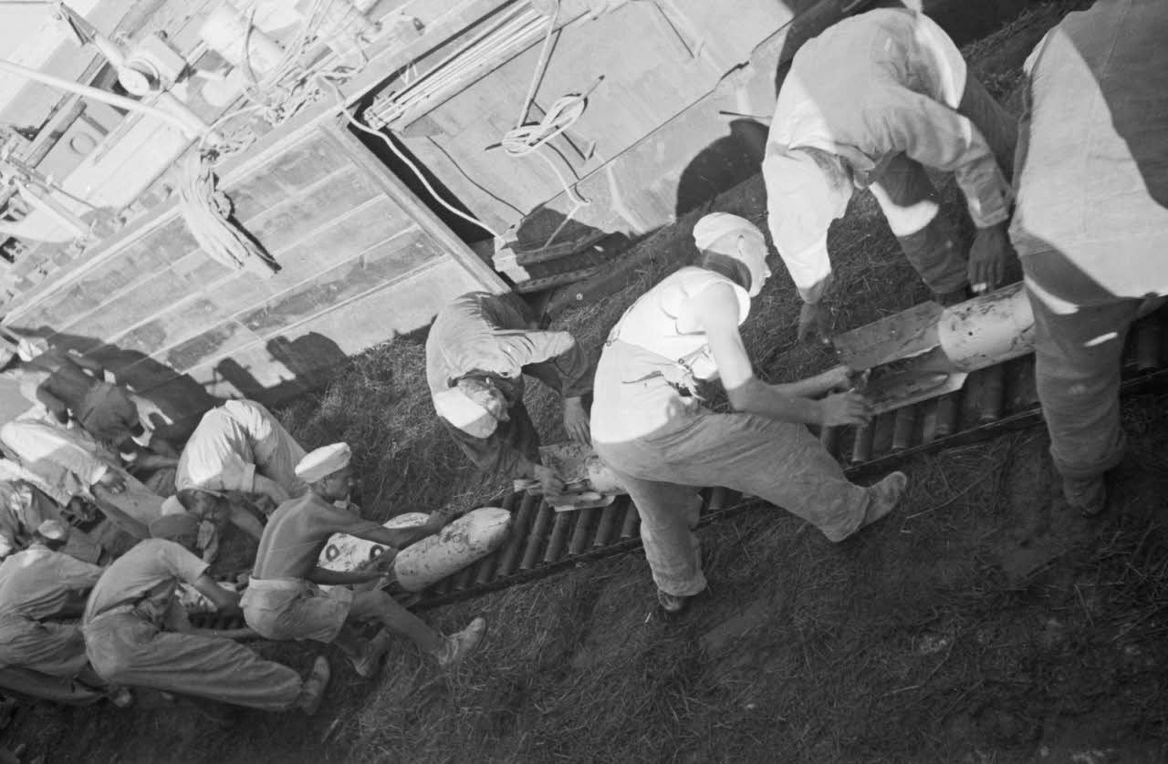 Des soldats de l'Afrika-Korps et des prisonniers du Commonwealth déchargent du matériel, de l'essence, des bombes mais également un canon de DCA italien et une locomotive (immatriculée FS 4193). Parmi les prisonniers qui déchargent le matériel, on note de nombreux soldats noirs dont certains portent des couvre-chefs (chapeaux) néo-zélandais. Sur la barge, le caméraman Ernst Jost (Graf) von Hardenberg doté d'une caméra Arriflex 35 mm (DAA 2497 L07). Sur la place d'un village, la musique militaire de la Luftwaffe joue en présence uniquement de soldats.