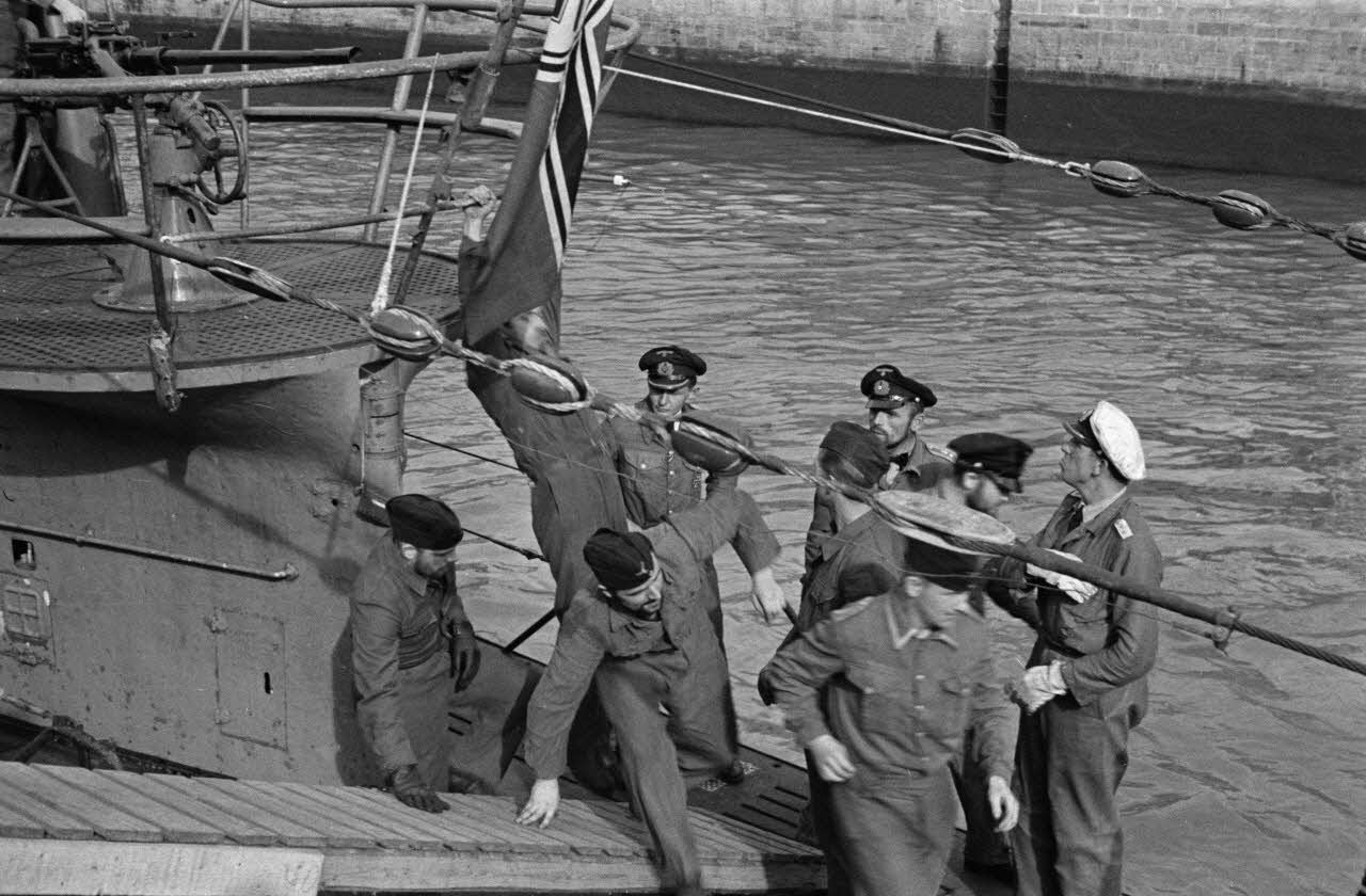 De retour au port de Saint-Nazaire, un équipage de U-Boot est accueilli par le capitaine de corvette (Korvettenkapitän) Herbert Sohler, représentant de la 7.Unterseebootflottille.