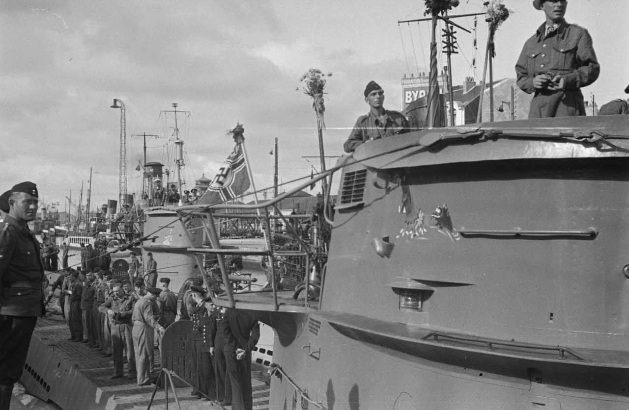 L'amiral Otto Schniewind et le capitaine (kapitänleutnant) Herbert Sohler montent à bord des sous-marins U-93 et U-94.
