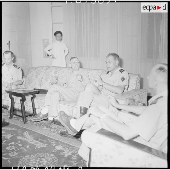 Dans le salon du général Cogny, le professeur Huard rend compte de sa mission.