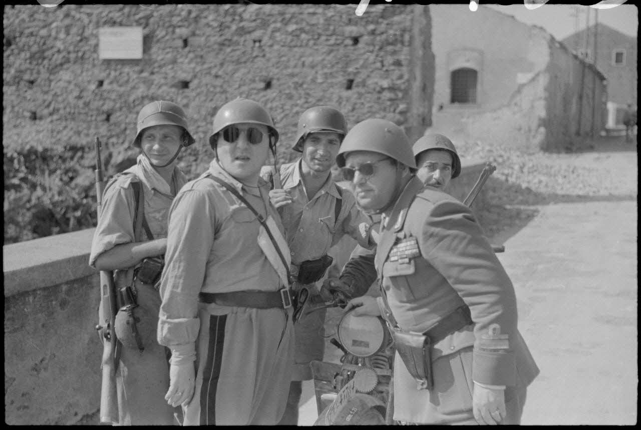 Dans le secteur de Catane en Sicile, la rencontre entre des fantassins du Panzer-Grenadier-Regiment Hermann Goering et des Italiens d'une unité d'infanterie.