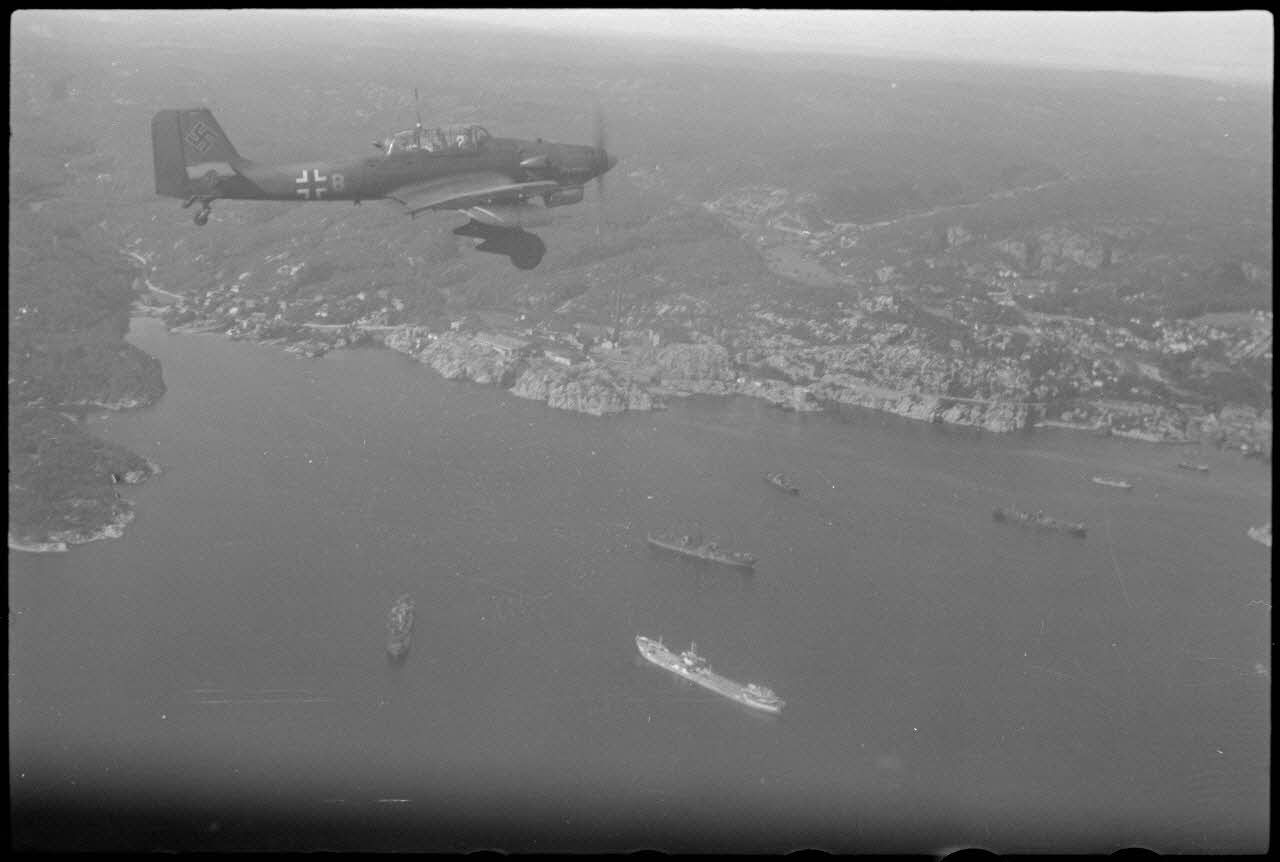 Un Junkers Ju-87 servant de remorqueur de planeurs au sein du Luftlandegechwader 1 (8./LLG 1) rejoint l'aérodrome de Banak (Norvège).