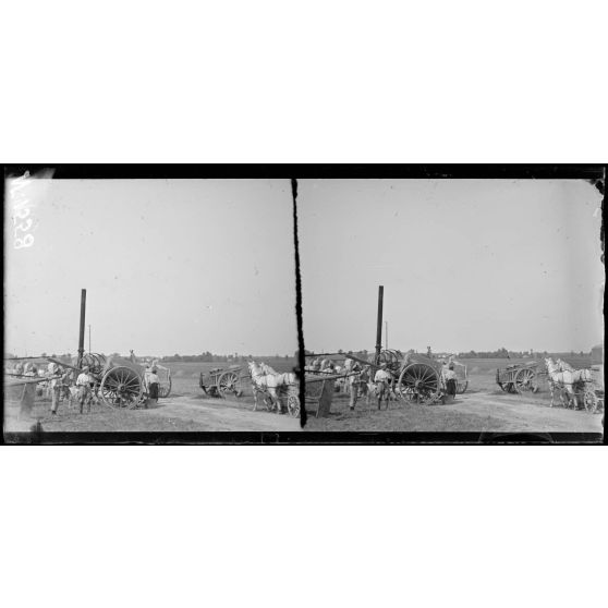 Saint-Martin-sur-le-Pré (Marne). Equipes militaires agricoles, batteuse à vapeur. (18-6-17).
