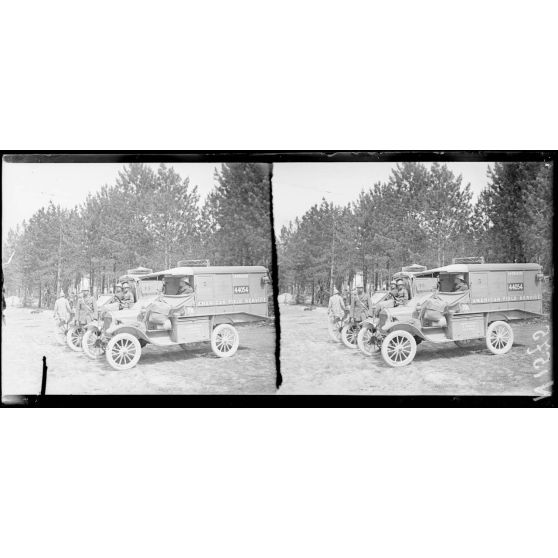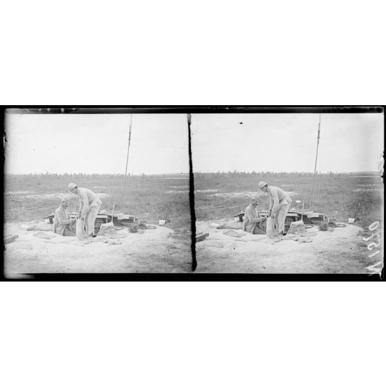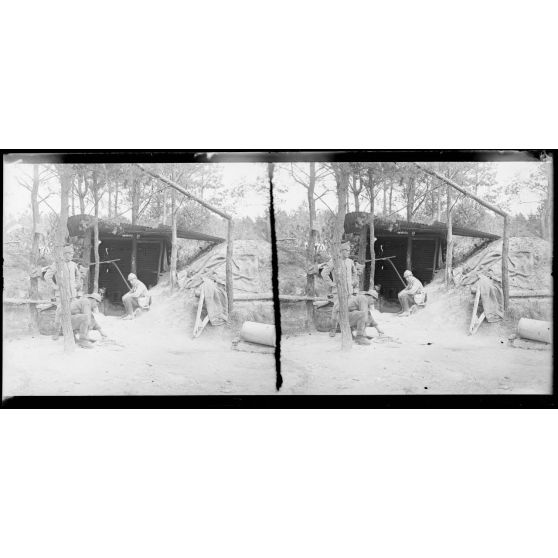 Baconnes (Marne). Ambulanciers américains à l'entrée de leur abri.