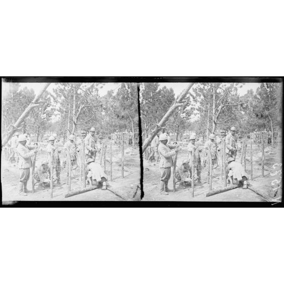 Baconnes (Marne). Préparation de fils de fer barbelés.