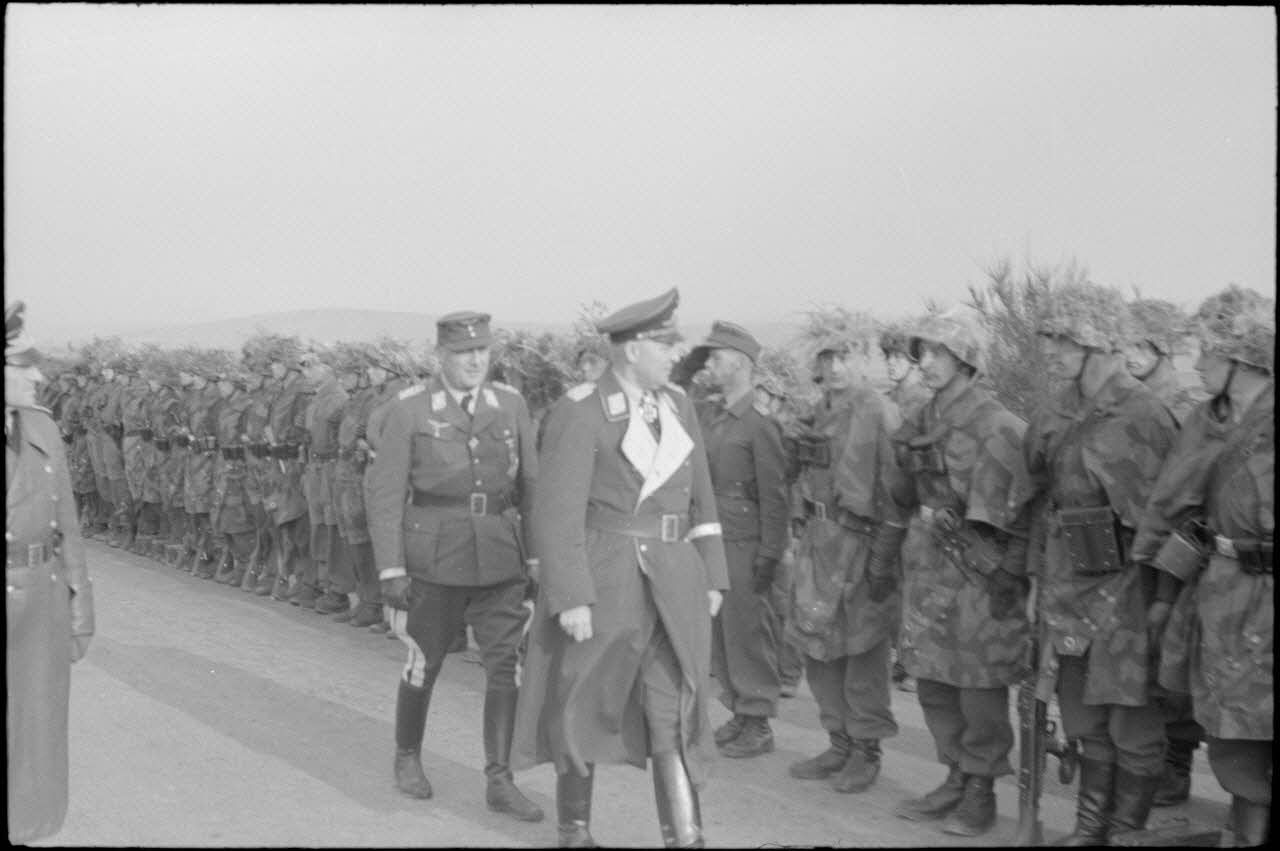 Le général (General der Flieger) Kurt Student passe en revue des parachutistes de la 3.Fallschirmjäger.Division.