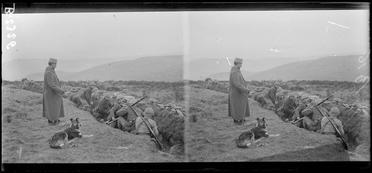 Au début de l'année 1916, après le dernier bombardement de l'Hartmannswillerkopf (le 8 janvier), Paul Queste parcours le front des Vosges et témoigne de la vie quotidienne des troupes : chasseurs alpins au cantonnement et à l'exercice, manoeuvres d'artillerie, sapeurs du génie et territoriaux au travail sur les routes et les voies ferrées, convois de ravitaillement par mulets ou en traîneaux, corvées de déblaiement de la neige, bûcheronnage. Le reportage accorde une large part à un chenil militaire et à une section sanitaire de skieurs s'entraînant notamment au saut.