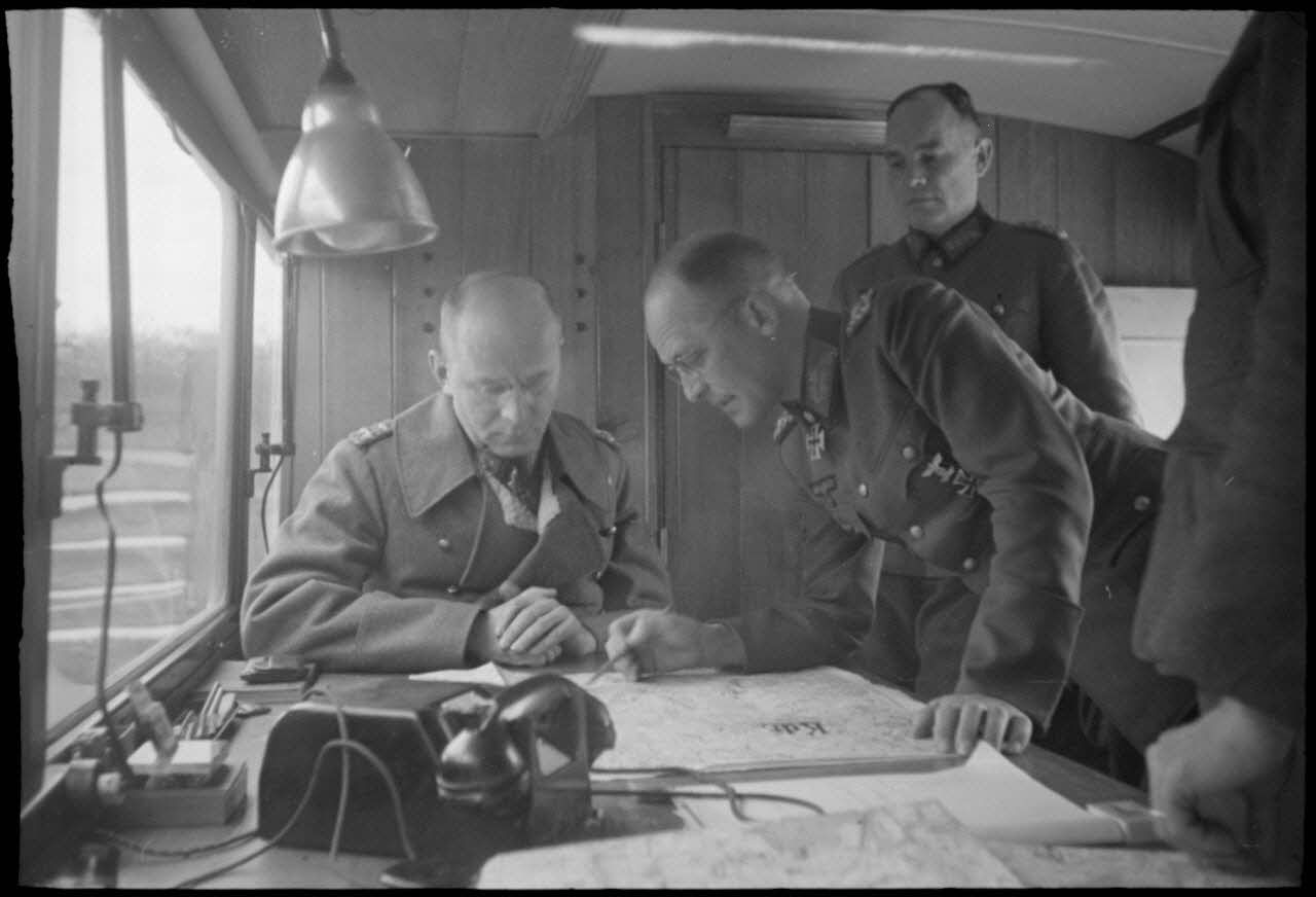 Dans un bus, les généraux Reinhardt (commandant de la 3.Panzerarmmee) et Thumm (5. Jäger Division) évoquent la situation militaire dans le secteur de Witebsk.