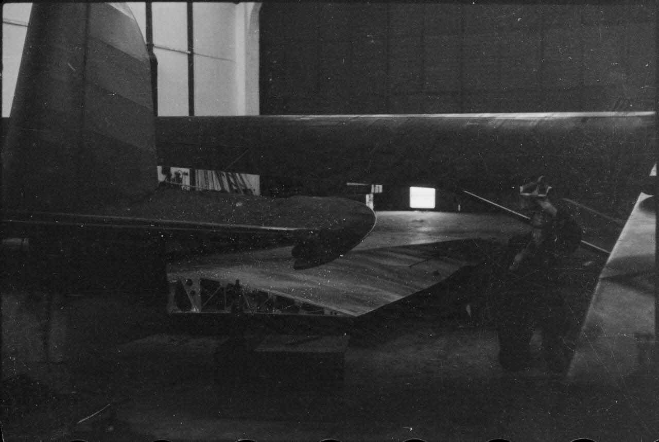 Dans un hangar d'un terrain d'aviation (peut-être Trondheim-Vaernes), la maintenance de planeurs DFS-230 du Luftlandegeschwader 1.