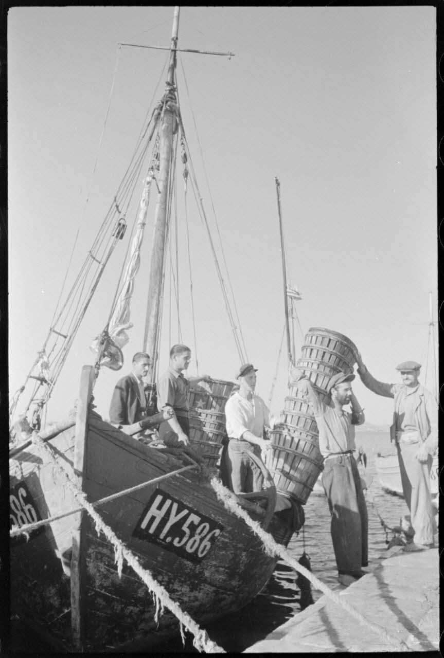 Dans un port de l'île de Naxos, déchargement de navires de pêche.