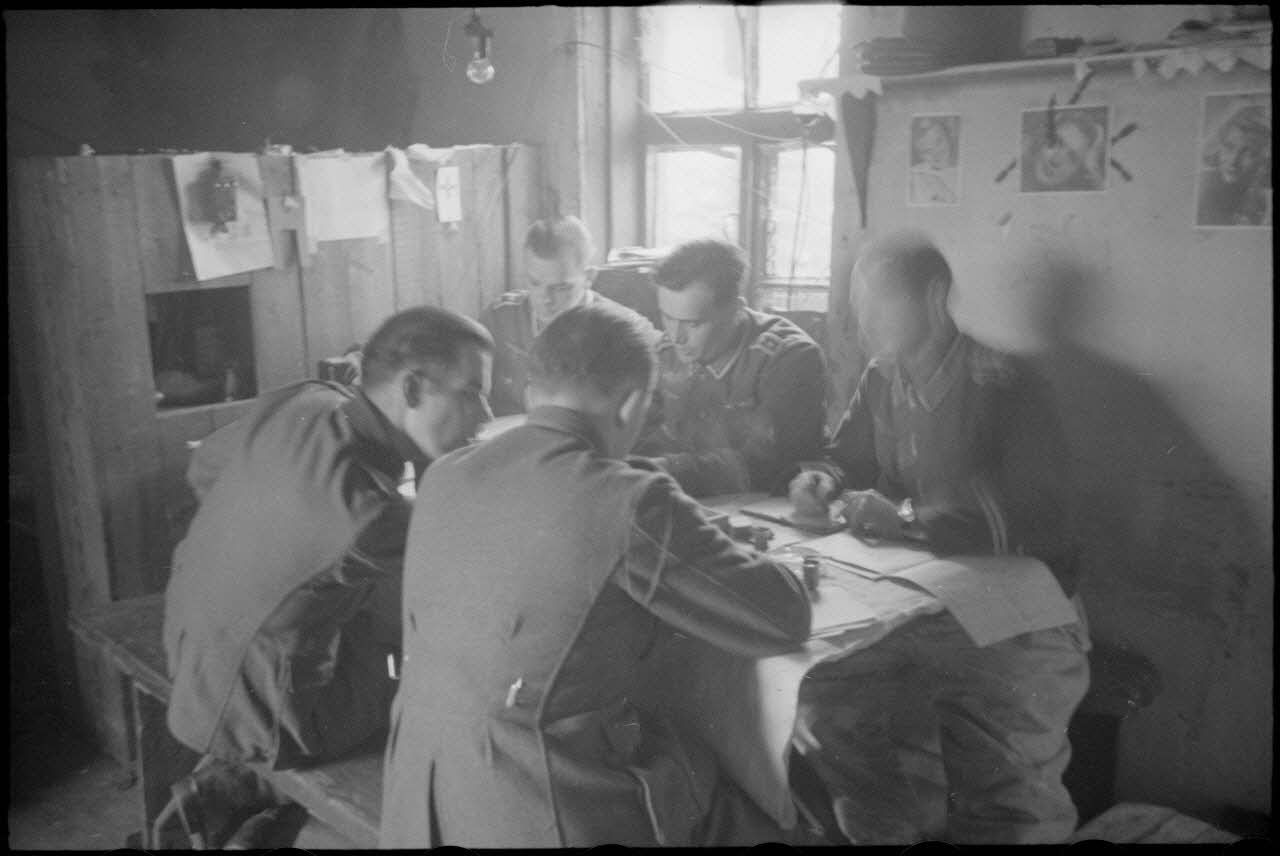 Dans une isba qui abrite les fantassins allemands en charge du contrôle des voies ferrées.