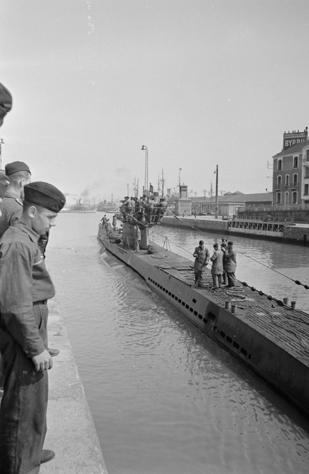 Dans le port de Saint-Nazaire, l'équipage du sous-marin U-553 quitte le navire à l'issue de leur dernière croisière.