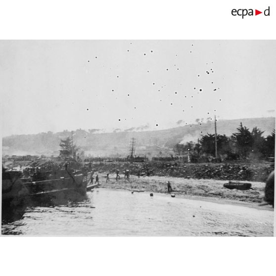 Débarquement des éléments du combat command n° 1 (CC1) de la 1re division blindée (1re DB) sur la plage des Eléphants à Sainte-Maxime.