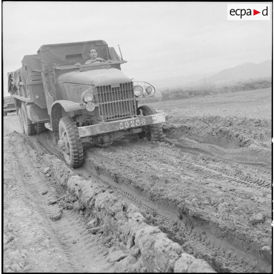 Débarquement du bac d'un camion GMC CCKW 353 (General Motors Company).