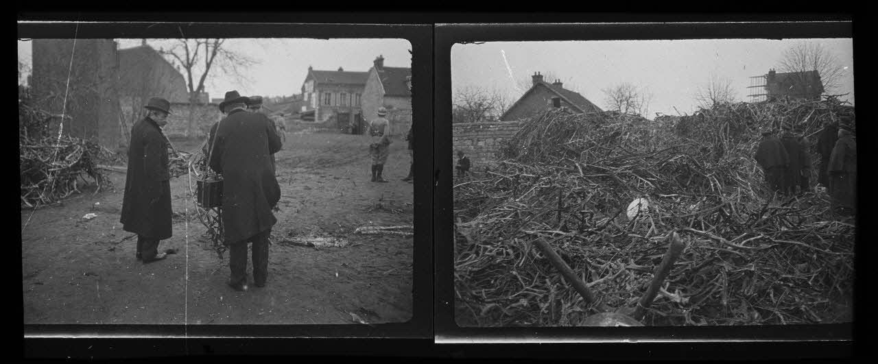 Inspection des débris d'un Zeppelin abattu à Compiègne le 17 mars 1917.