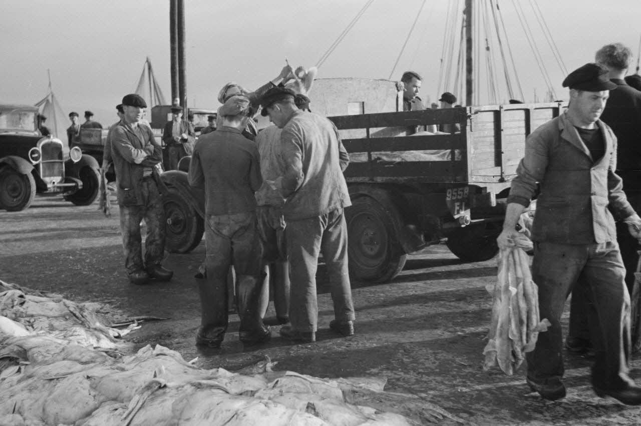 Déchargement des poissons lors du retour des pêcheurs au port de Douarnenez.