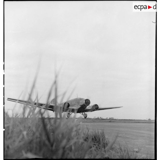 Atterrissage d'un avion Junkers Ju-52 sur le terrain de Bach Maï.