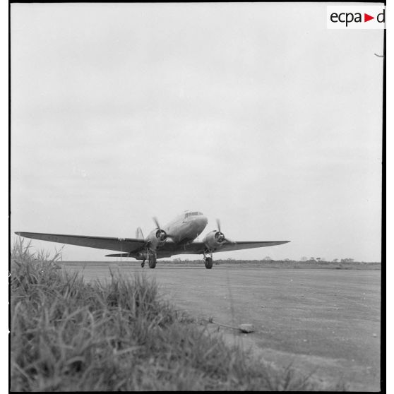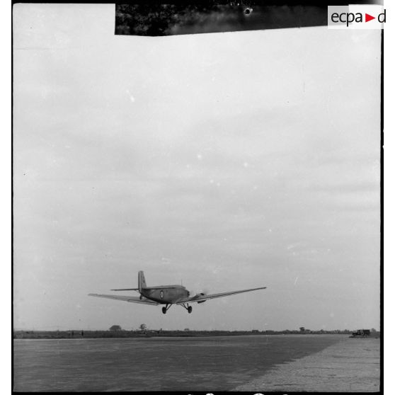 Décollage d'un avion Douglas C-47B Skytrain de Gia Lam à destination de Laï Chau avec à son bord des éléments du 17e tabor marocain.