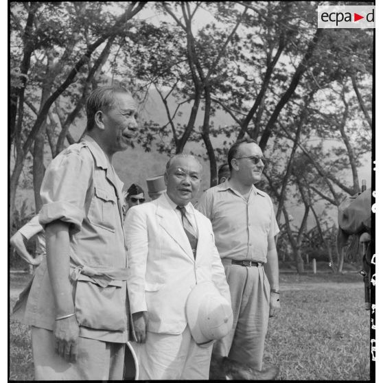 Le général Salan s'entretient avec Déo Van Long, président de la Fédération Thaï.