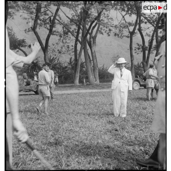 Déo Van Long, président de la Fédération Thaï, salue le général Salan après une entrevue à Laï Chau.