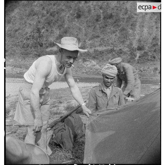 Installation d'un camp volant sur les bords de la rivière Nam Na près de Laï Chau par le 17e tabor marocain.