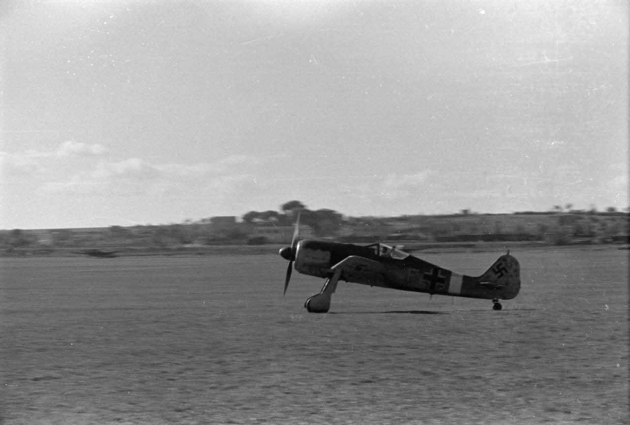 Décollage de Focke-Wulf Fw-190 du 1er groupe du Schlachtgeschwader 4 depuis le terrain d'aviation de Guidonia Montecelio.
