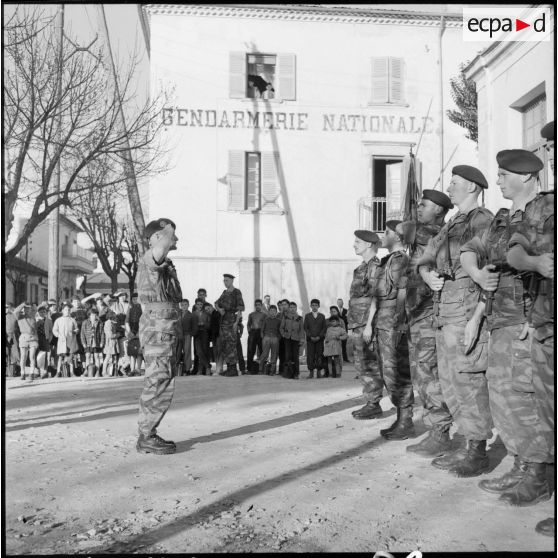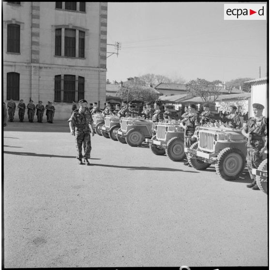 Le colonel Château-Jobert salue un peloton du 2e régiment de parachutistes coloniaux (RPC).