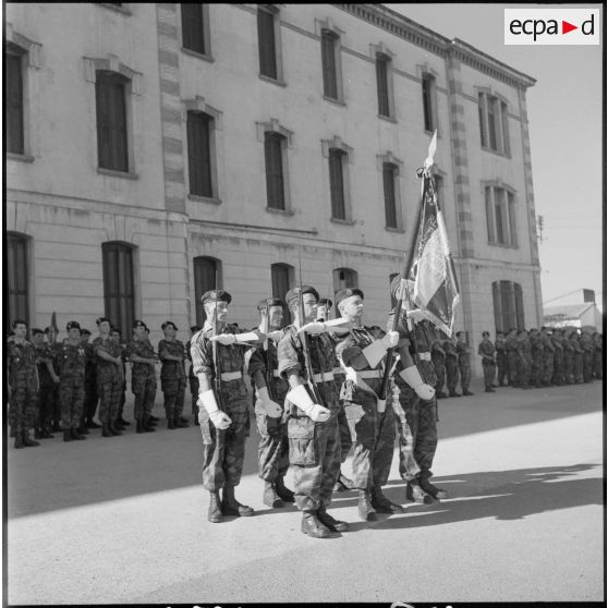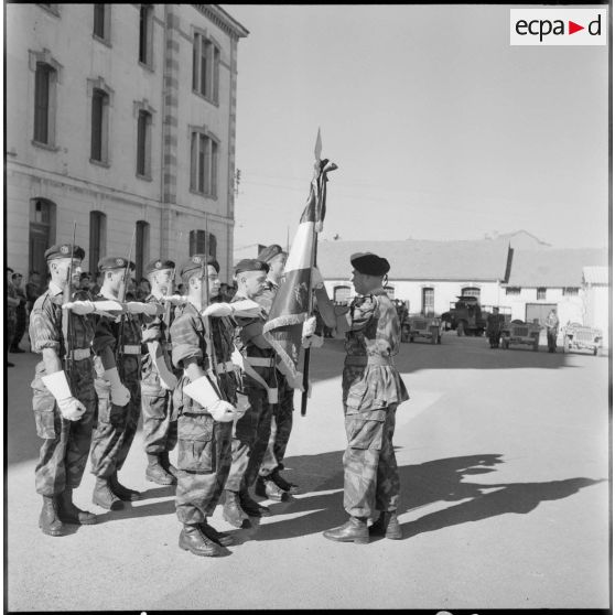 La garde au drapeau du 2e régiment de parachutistes coloniaux (RPC).
