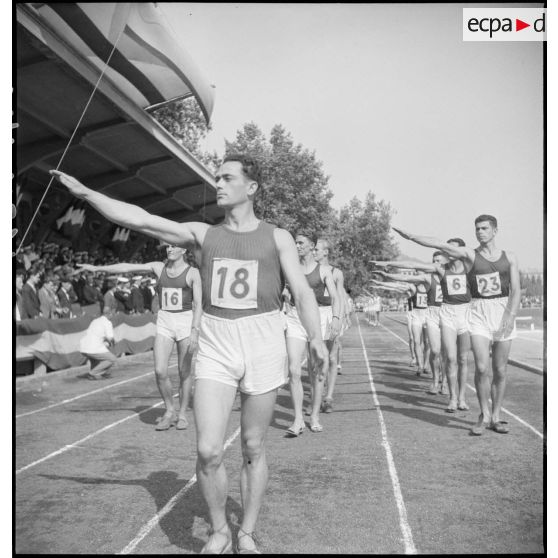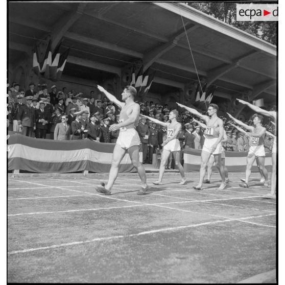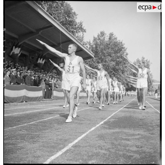 Le sport dans l'armée d'armistice : tournoi triangulaire d'athlétisme opposant les trois armées à Toulon (Var).