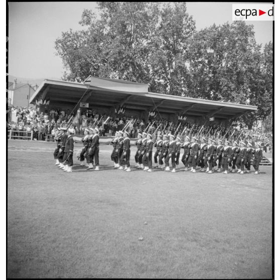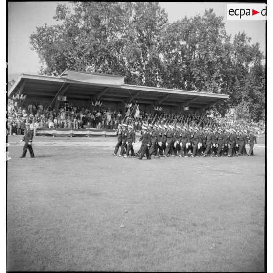 Un détachement de l'armée de Terre défile devant la tribune officielle.