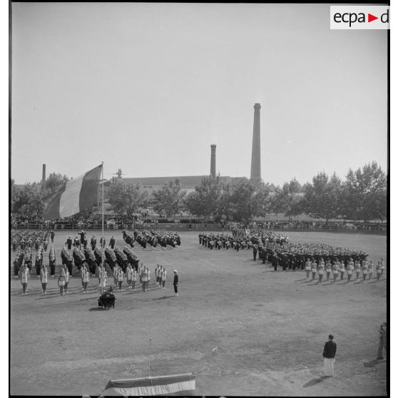 Le 13 septembre 1942, à Toulon, a lieu un tournoi d'athlétisme triangulaire opposant des équipes de l'armée de terre, de l'air et de la marine. Un défilé des détachements d'honneur et des athlètes des trois armées précède une cérémonie des couleurs et une revue des athètes par l'amiral François Darlan, commandant en chef des trois armées (reportage VICHY 233). Une prestation de serment d'un représentant de chaque équipe a lieu avant les épreuves de 5 000 mètres, 800 mètres, 400 mètres, lancer du disque, du javelot, de saut en hauteur (reportage VICHY 234) et de saut en longueur, avant la remise du trophée et les félicitations aux vainqueurs par l'amiral Darlan (reportage VICHY 235).