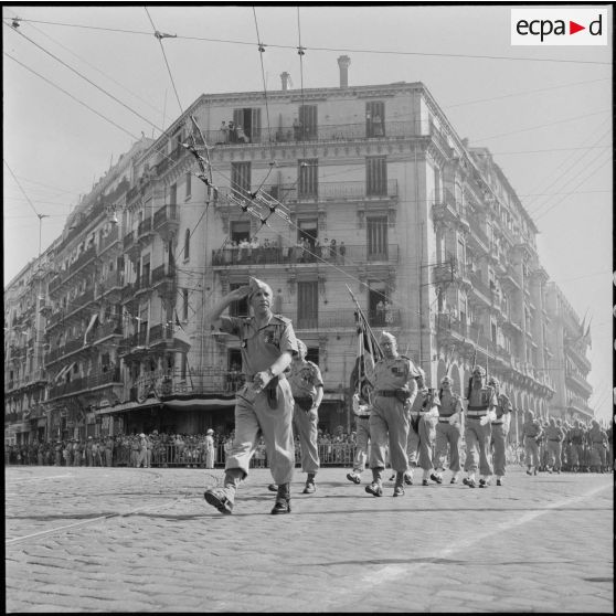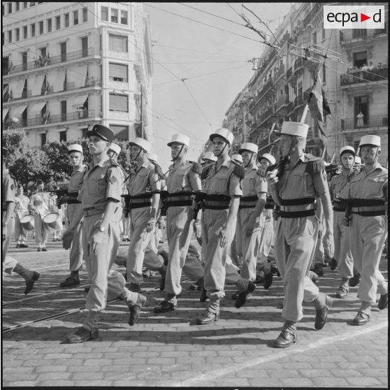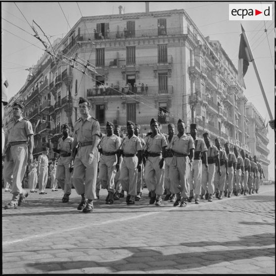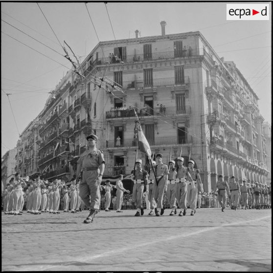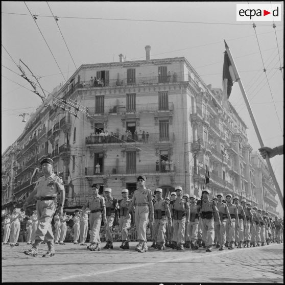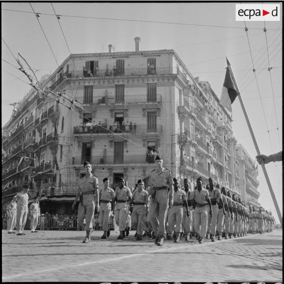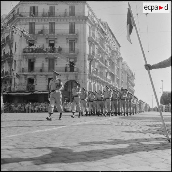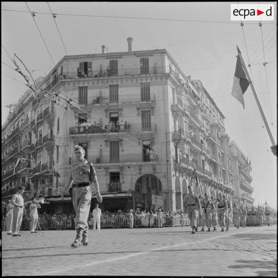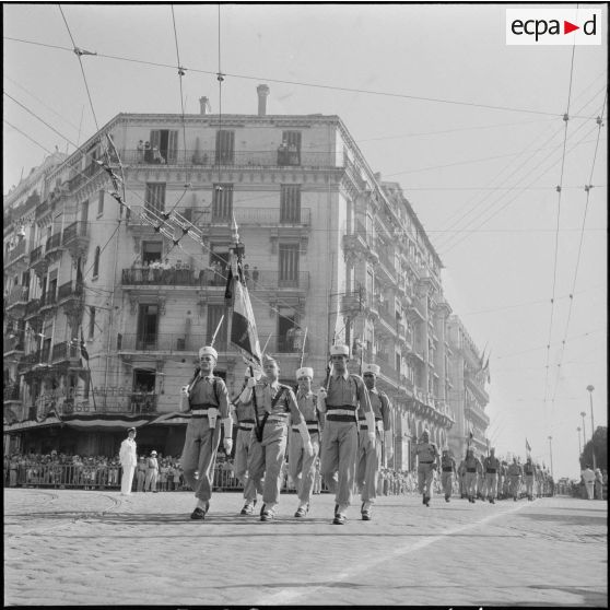 Défilé du 14 juillet à Alger en présence du gouverneur Léonard et du général Cailles.