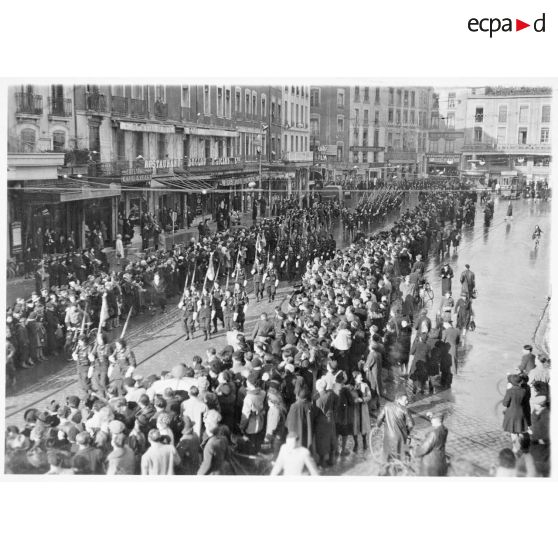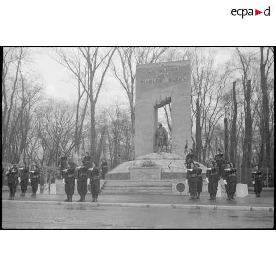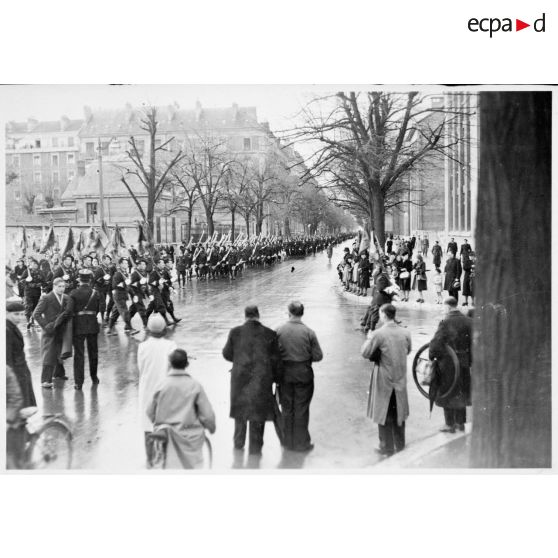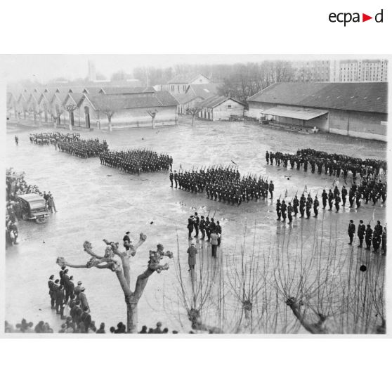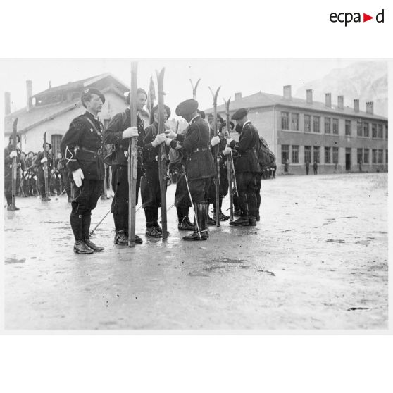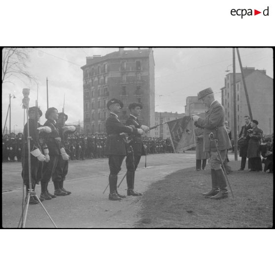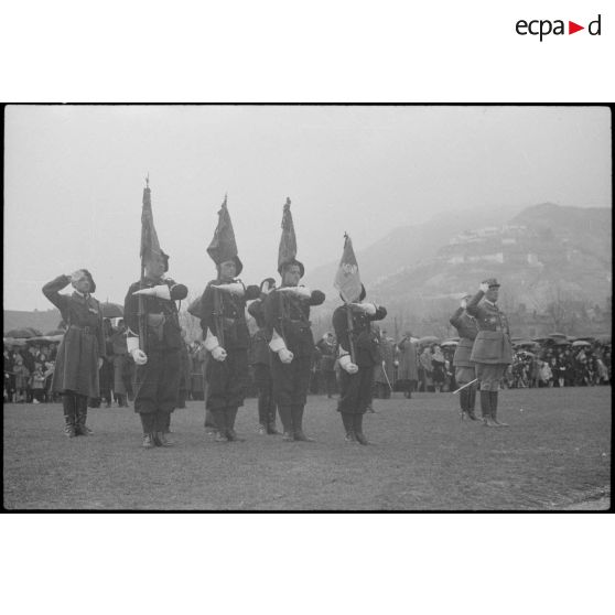 L'armée d'armistice : cérémonie de remise de la croix de guerre au fanion du 6e BCA de Grenoble (Isère).