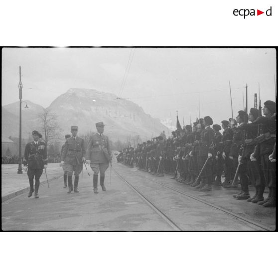 Revue des troupes de chasseurs alpins par le général Frère à Grenoble.